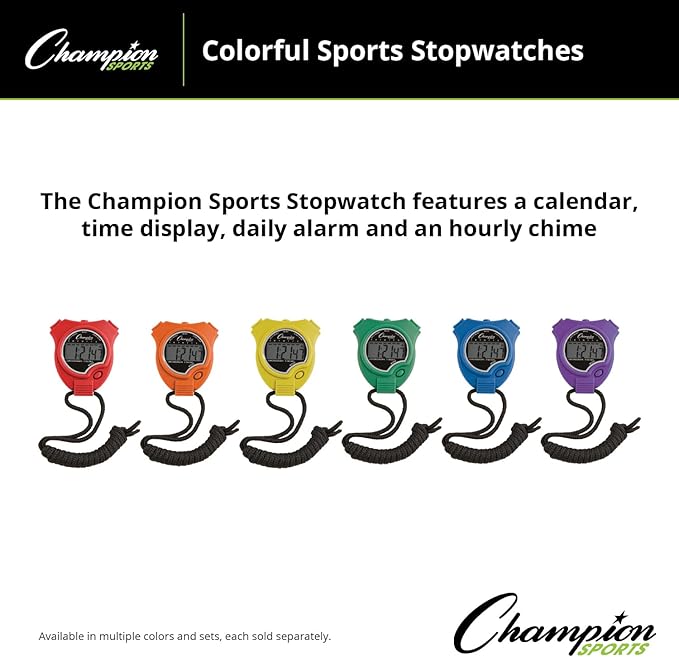 • PORTABLE LANYARD WATCH: Champion Sports stopwatches comes with a basic black neck cord so coaches or a referee can easily slip the watch over their neck and keep track of time at an event or practice