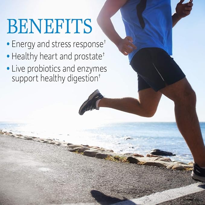 • MULTIVITAMIN WITH PROBIOTICS & WHOLE FOODS: One a day men's vitamins support prostate & heart health, energy and healthy stress response; 24 powdered organically grown raw fruits and vegetables add supporting antioxidants, vitamins & nutrient cofactors