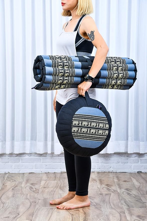 • Material: The Zabuton cushion for adults is filled with kapok. The stable and breathable fiber used for the yoga mat allows for a pleasant and comfortable seating position