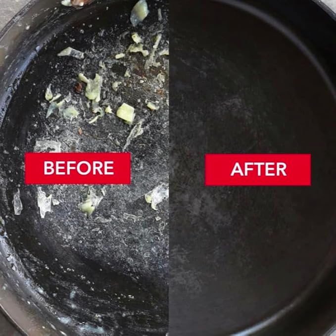 - Works on more than cast iron: bring your best pots and pans back to life - especially those grimy bottoms and sides - with your favorite kitchen cleaner.
