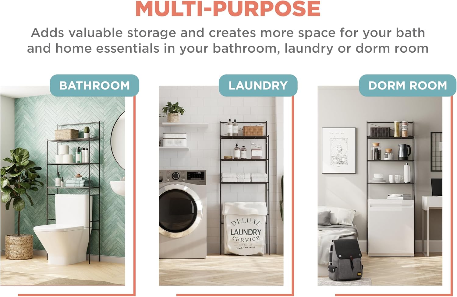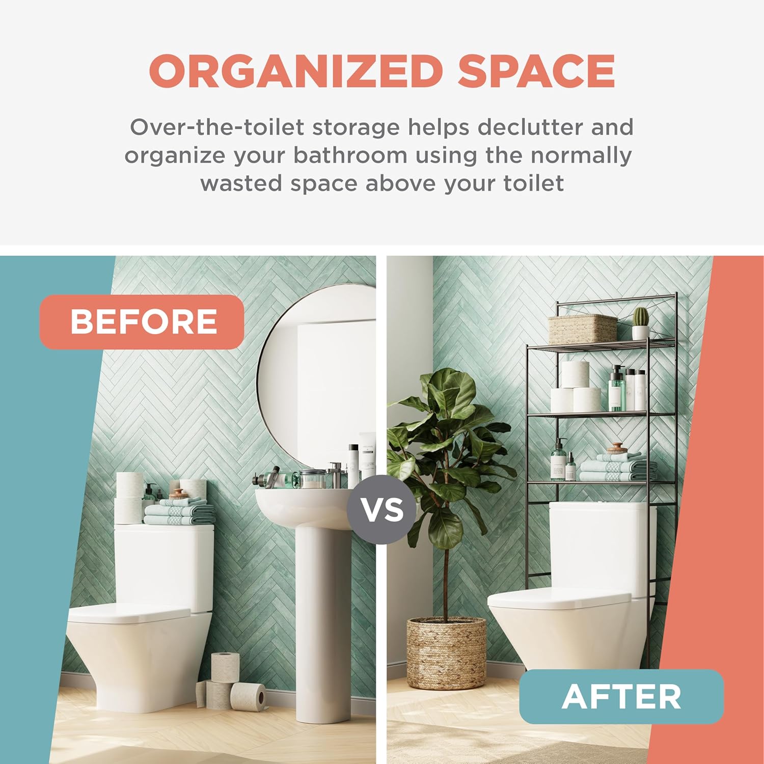 - Maximizes Bathroom Storage: This over the toilet bathroom organizer adds three spacious shelves to your bathroom, perfect for storing toiletries, linens, and decor. Transform wasted space into valuable bathroom organizers and additional storage.