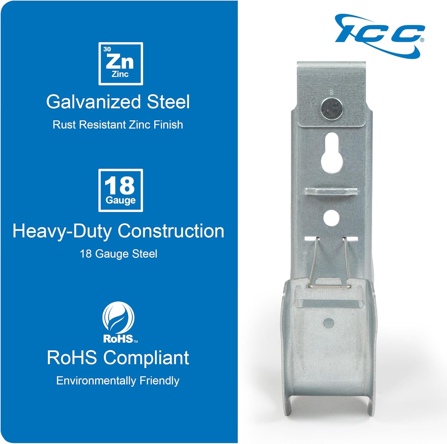 - EFFICIENT OVERHEAD CABLE MANAGEMENT - ICC Ceiling Mount J-Hooks provides a practical solution for organizing and securing cables overhead. With a practical design and function, each one helps prevent tangled wires and keep cables neatly routed along ceilings, walls, or beams, ensuring a clean and organized space.