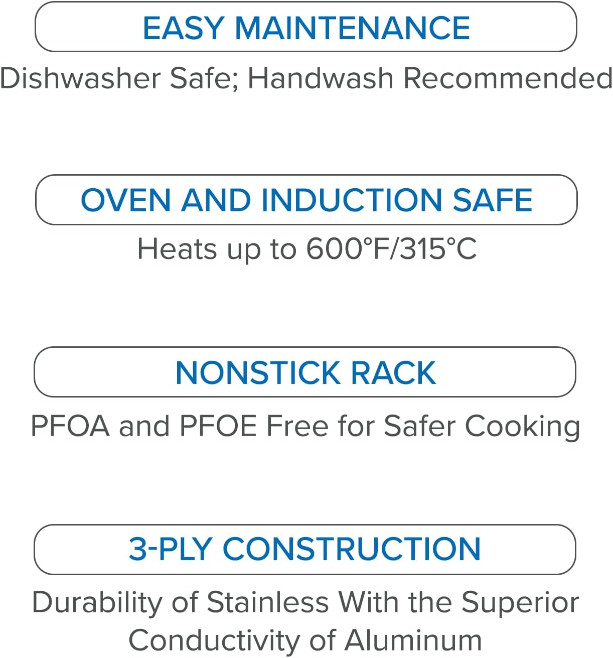 - DURABLE DESIGN FOR EFFICIENT COOKING: Our roasters feature a durable 3-ply construction consisting of a 304 non-reactive induction capable stainless steel interior, aluminum core, and stainless steel exterior which delivers even heat distribution along the bottom and throughout the sides of the pan; our broiling pan is oven friendly and compatible with gas, electric, grill, and induction, and heats up to 600 degrees F (315 degrees C); dishwasher safe, hand washing is recommended