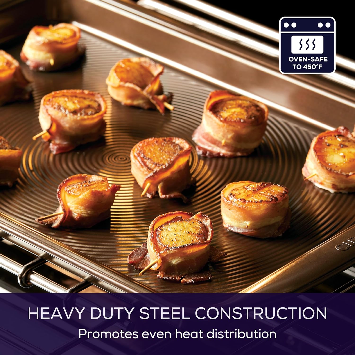 - EMBRACE THE HEAT: The cookie sheet is oven safe to 450°F; wide handles provide generous, confident grip