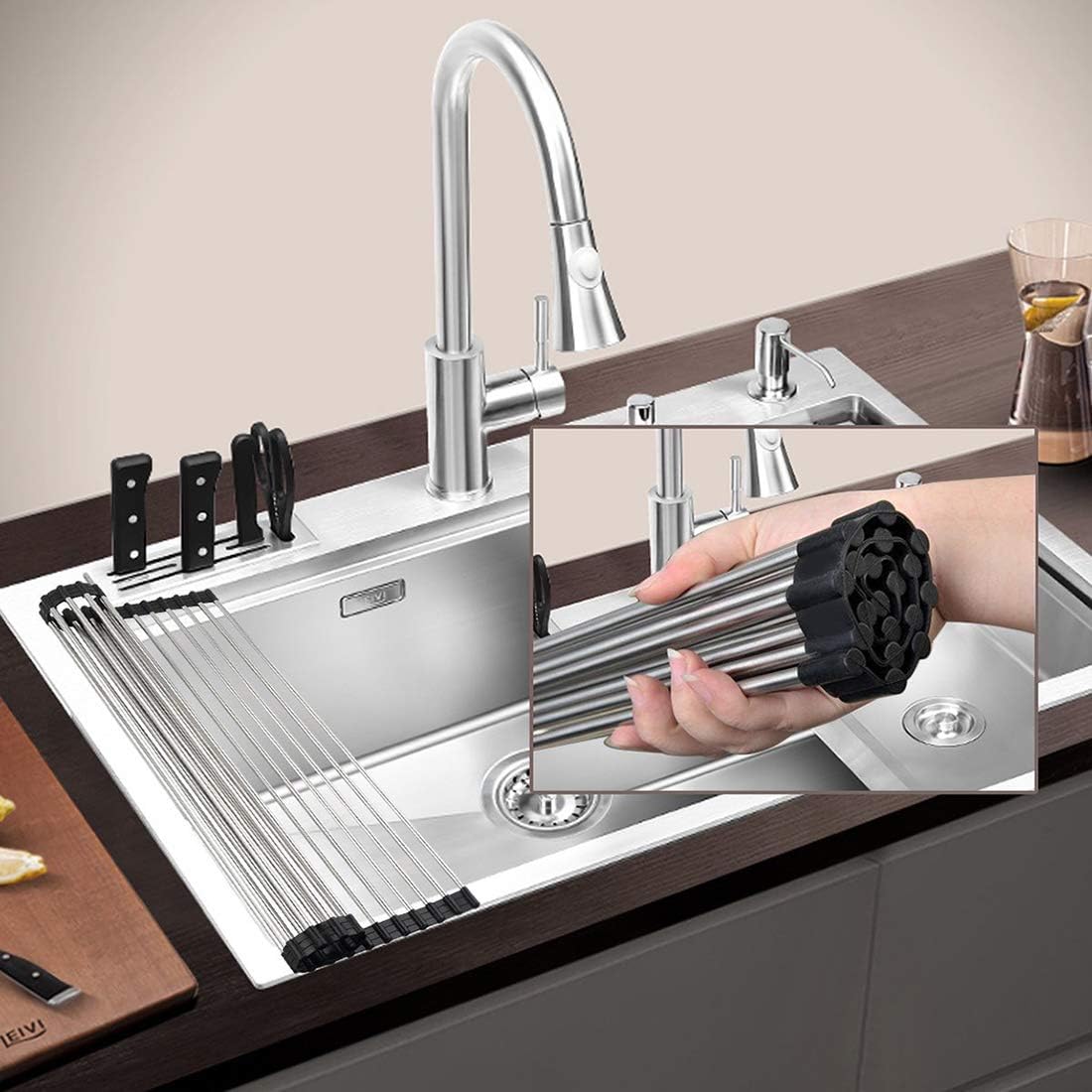 - Newest Displayed Dimension: 20.5"(L) x 11.2"(W) X 0.5'' (H). SUS304 Stainless Still Pipes. Please kindly measure your sink size firstly before purchasing this roll up over the sink dish drying rack! Great Gift for Mother's Day, Father's Day, Christmas Day, New Year, family members and all festivals Gifts