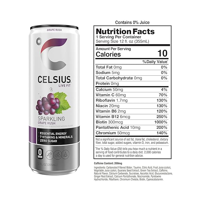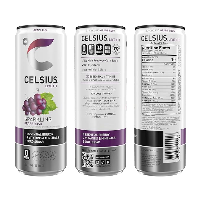 • Juicy, sweet, refreshing and a little nostalgic. Enjoy the flavor packed taste of CELSIUS Sparkling Grape Rush.