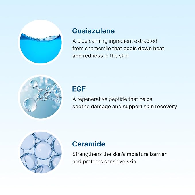 • CALMING & SOOTHING CREAM: Experience instant relief with our gentle cream, featuring star ingredients like Guaiazulene, extracted from Chamomile Oil, for powerful calming effects. Plus, Centella Asiatica hydrates and soothes, perfect for healing damaged skin and reducing redness.