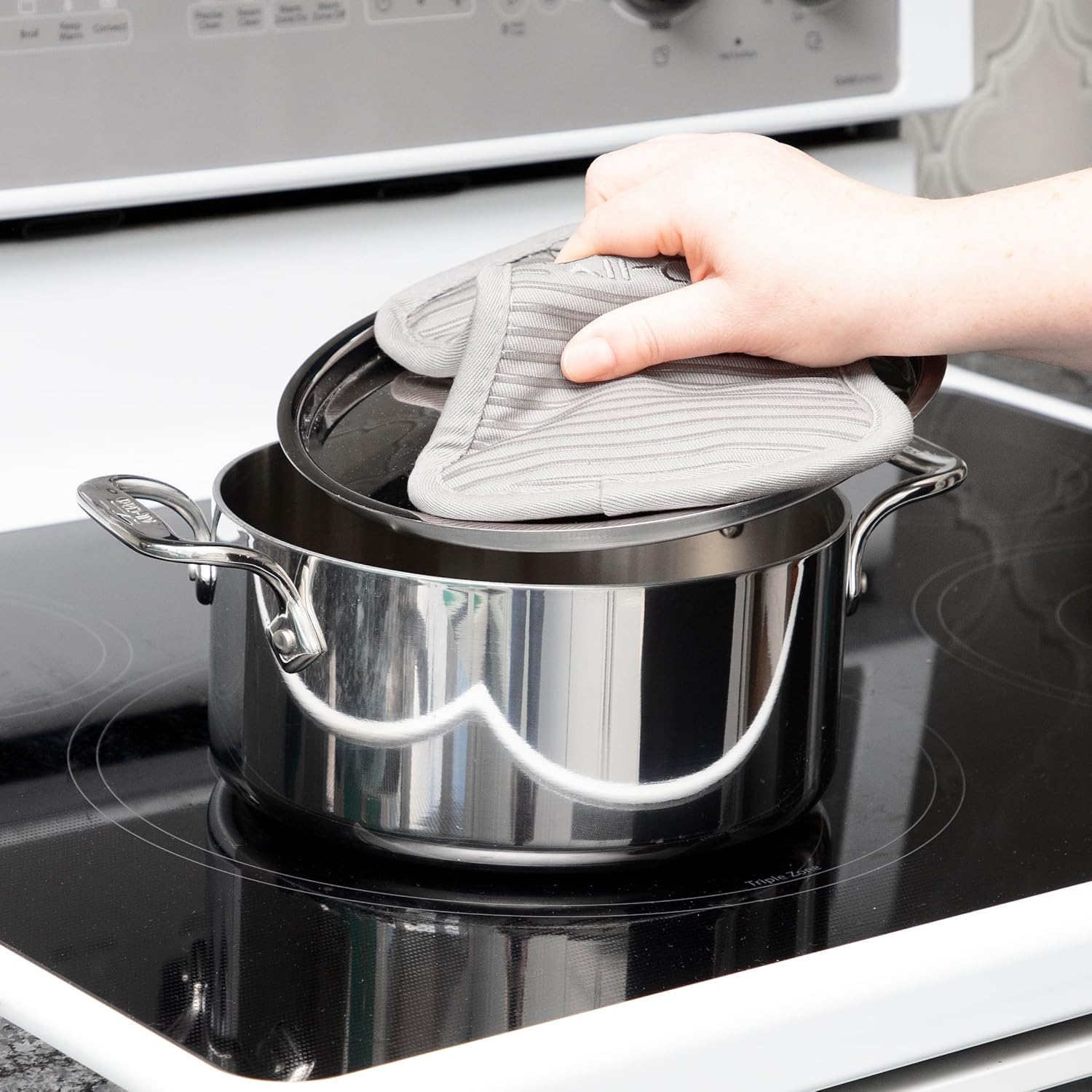All-Clad Premium Pot Holder & Hot Pad: Heat Resistant up to 500 Degrees - 100% Cotton, 10"x6.25" Hot Pad for Kitchen and Barbeque, 2-Pack, Titanium