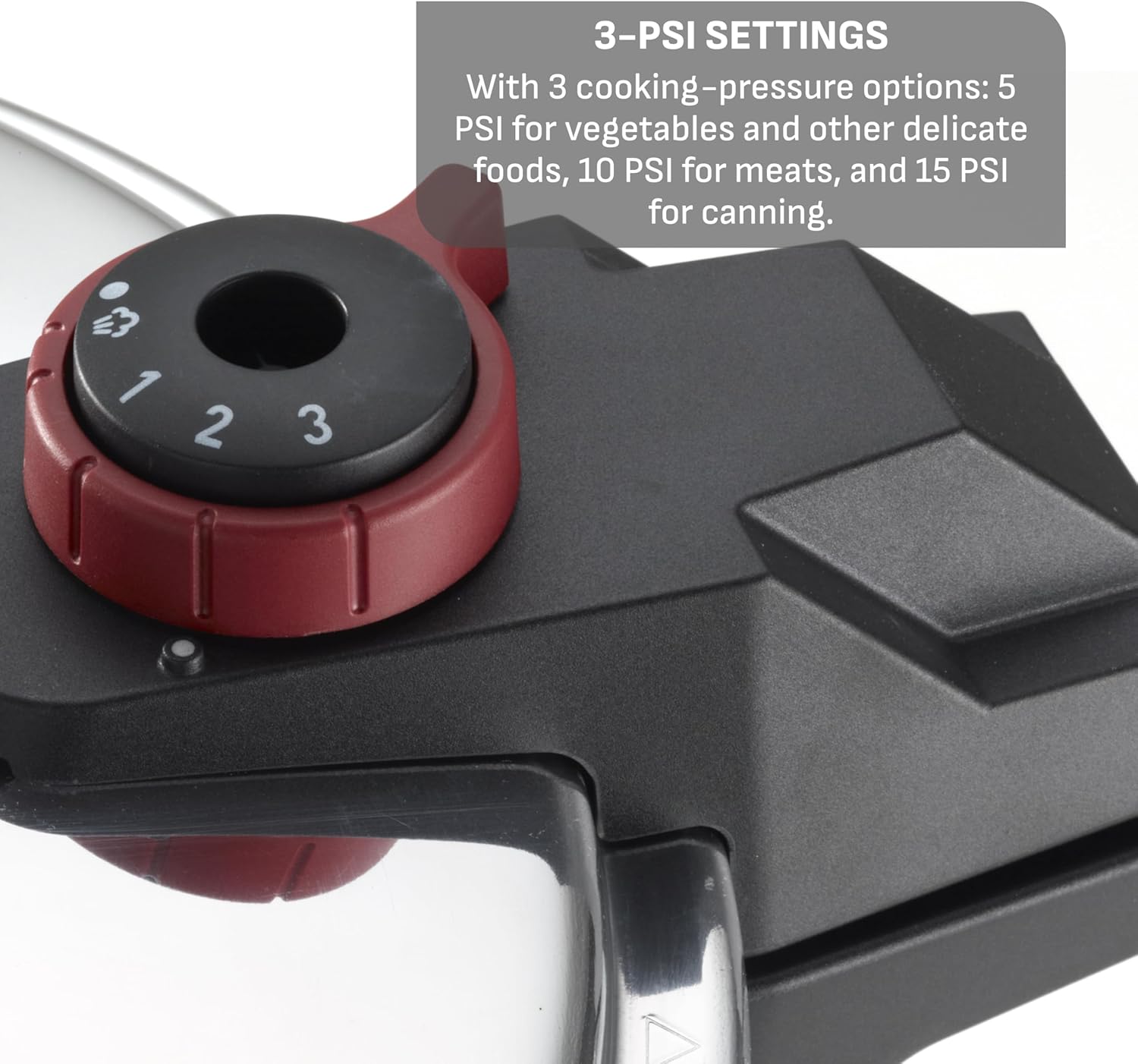 - ๐ ๐๐๐ฅ ๐ฌ๐๐๐ ๐๐ง๐ ๐ฌ๐๐๐ฎ๐ซ๐: Featuring a secure locking mechanism to ensure risk-free opening and closing, a steam release valve and gauge to monitor pressure (gauge display may vary), and sturdy handles for secure and comfortable grip