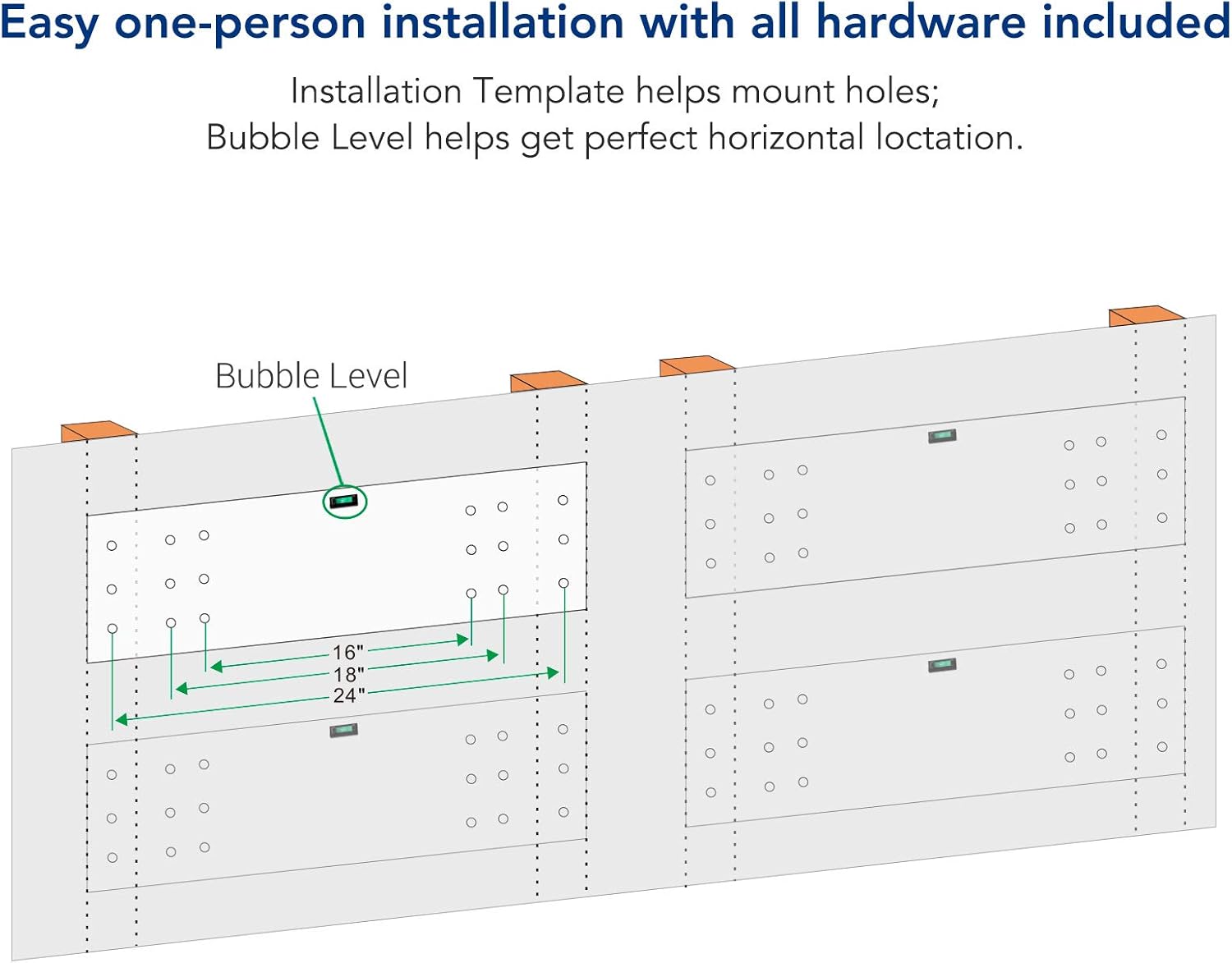 - Easy Installation: Easy one-person installation with all hardware included: Installation Template helps mount holes; Bubble Level helps get perfect horizontal location.