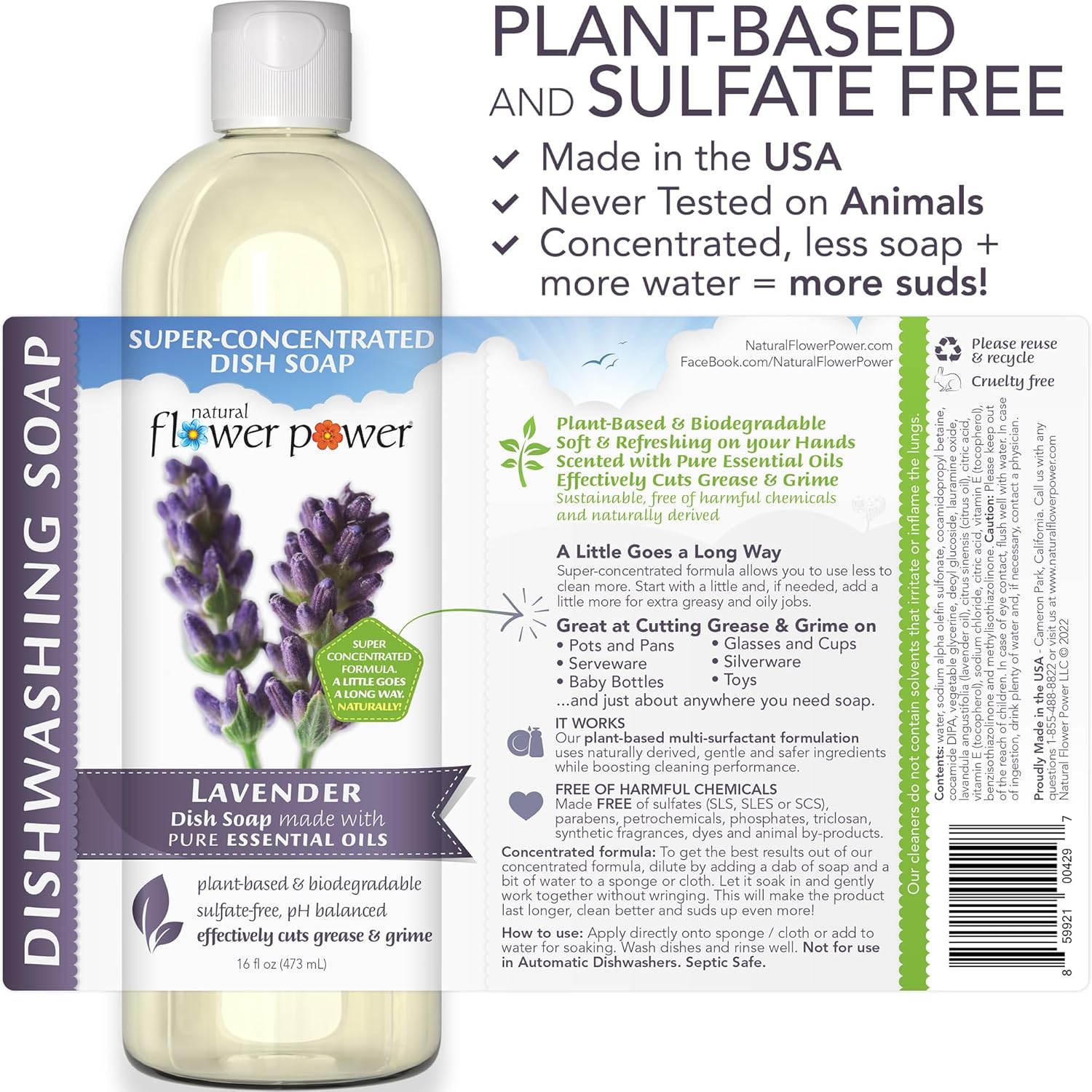 - Super concentrated yet gentle on skin, Natural Flower Power’s dish soaps cut through grease and grime on dishes, pots, pans, utensils, glassware, baby bottles, pet bowls, countertops, and more