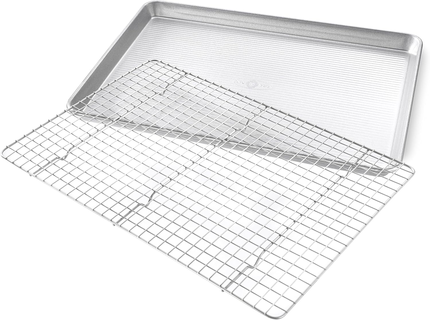 USA Pan Bakeware Half Sheet Baking Pan and Bakeable Nonstick and Cooling Rack Set, Metal