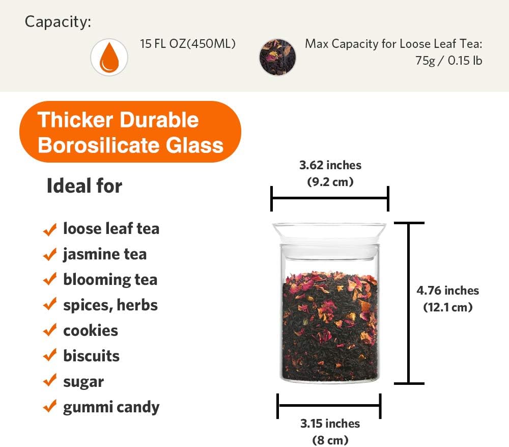 ZENS Airtight Glass Jar Container,15 Fluid Ounce Clear Glass Canister with Lid, Food Storage Jars for Kitchen Spice or Loose Tea,450ml