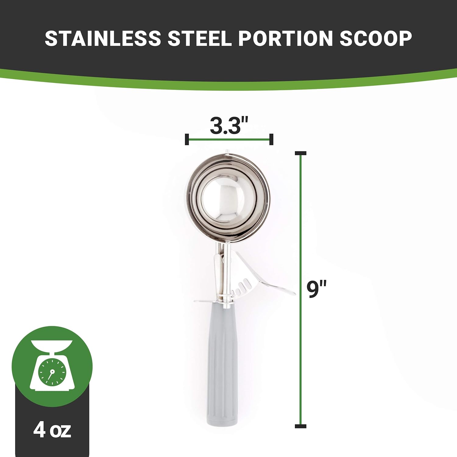 - EASY ORGANIZATION: This portion scoop has a gray handle for easy identification, minimizing confusion when handling an array of food items. Serve in style with this sophisticated tool!