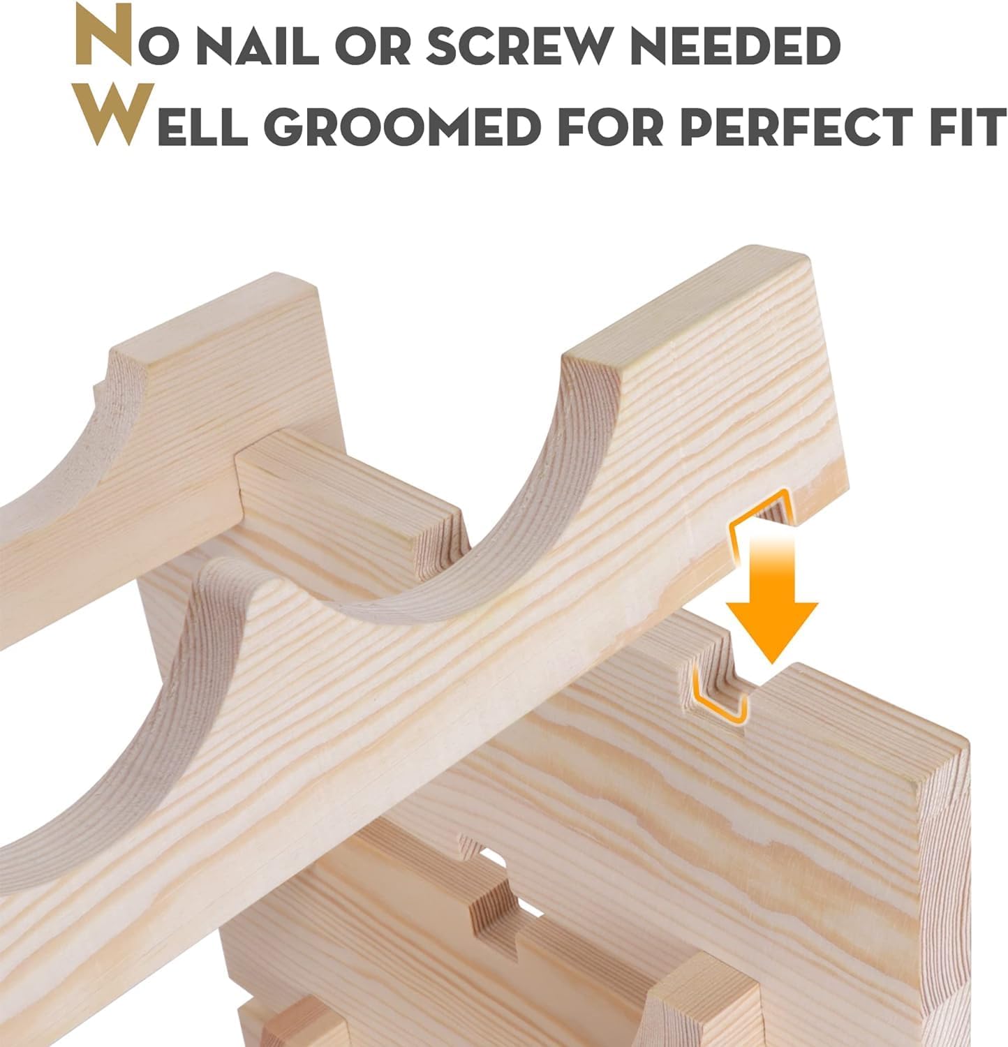 - 【Interlocking & Wave Design - Keep Wine Fresh】Each piece of wood has notches and slots which are deep so they can fit together well, make the wine display shelf more stable on the wood floor or the carpet, just sort of press the pieces together, inseparable and free from vibrations. Versatile modular stacking style, wave shaped shelves, arc design prevent wine bottles scattered around while slight tilt helps to keep your wines fresh and in handy