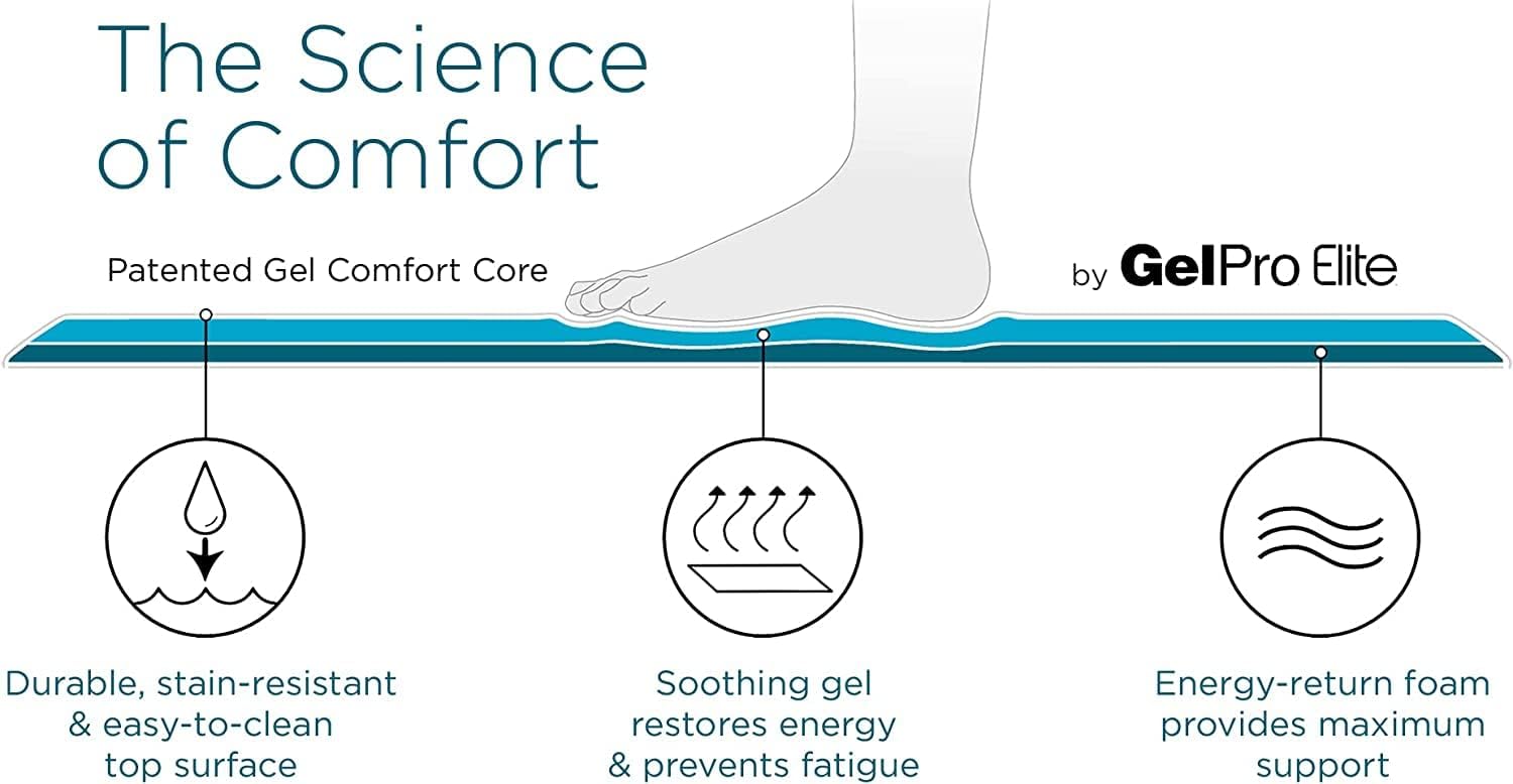 - GelPro Elite features a 3/4" dual Comfort core: Soothing gel + energy-return foam which dramatically reduces stress, fatigue & discomfort