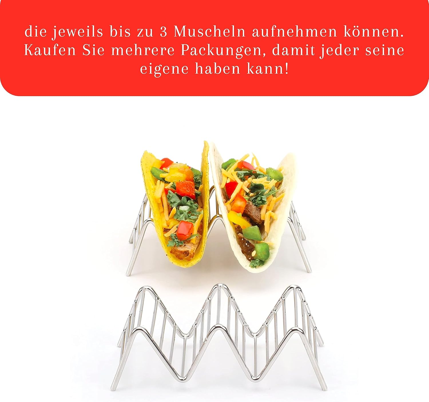 - ★ TACO STAND HOLDER ★ enjoy your favorite Taco’s served in style with our stainless-steel Taco Holder. Filling and serving them has never been easier and all the fillings stay in place when carrying them in an upright position to the table.