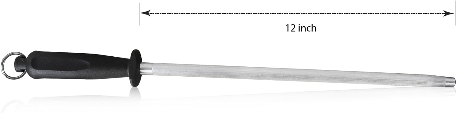 Professional Carbon Steel Black Knife Sharpening Steel, Black 12 Inch