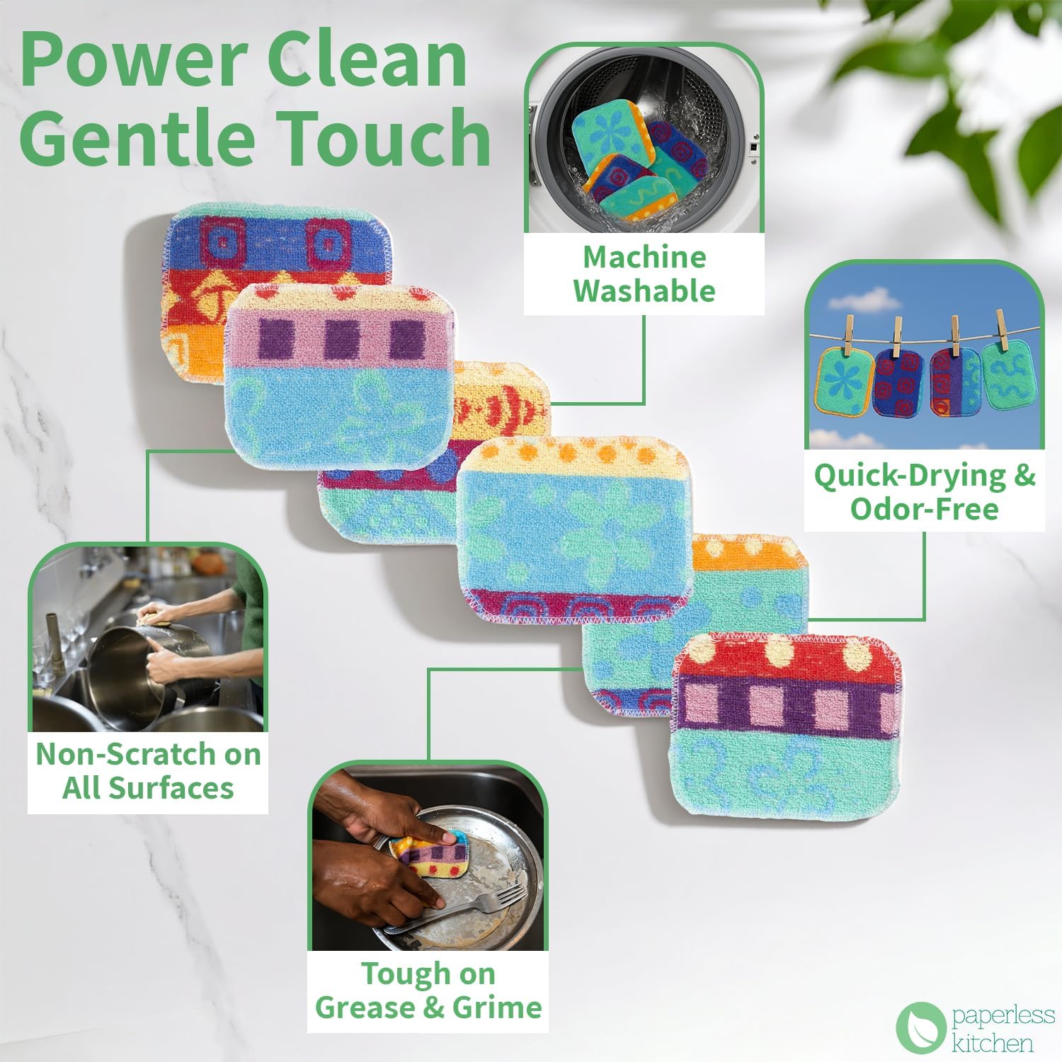 Kitchen Dish Scrubbers | Soft Scrub for Dishes | Non-Scratch Cleaning Pads for Kitchen | Made from Cotton Fiber | Safe on All Surfaces | Long-Lasting & Easy to Clean | Pack of 12
