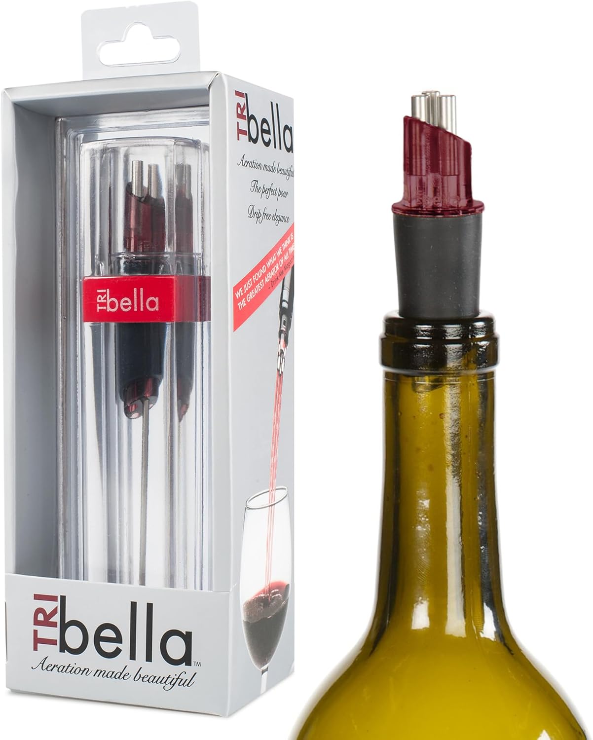 - DELIVERS THE MOST BEAUTIFUL WINE-DRINKING EXPERIENCE – TRIbella enhances your wine experience by aerating it through three streams. This increases surface area, letting the wine breathe and improving its flavor as it smoothly flows into your glass.