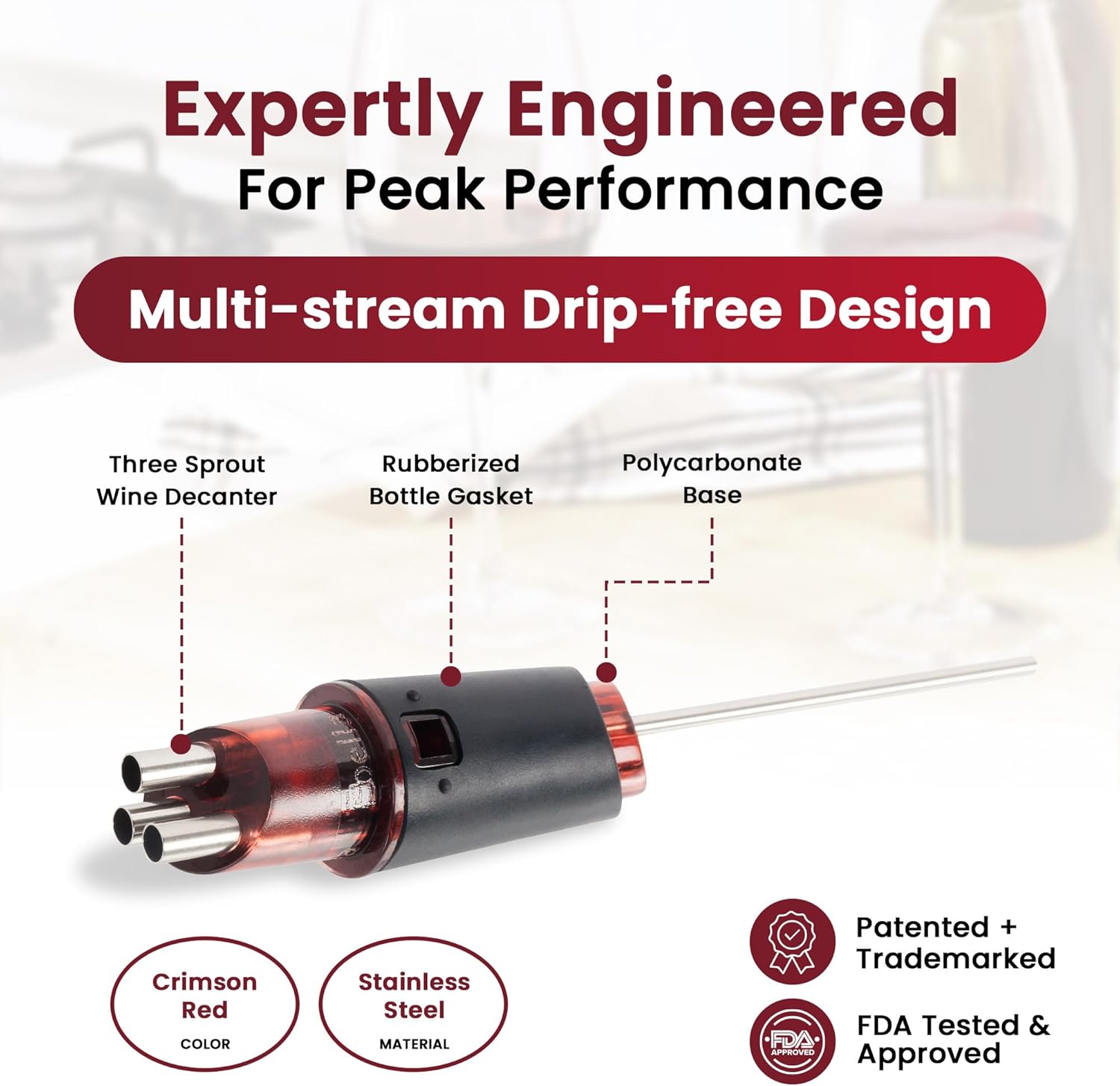 - WORLD’S MOST ELEGANT FORM OF WINE AERATION – TRIbella stands out with its drip-free design, avoiding awkward splatters and dribbles. It ensures a smooth, elegant wine-pouring experience, making the process both trouble-free and refined.