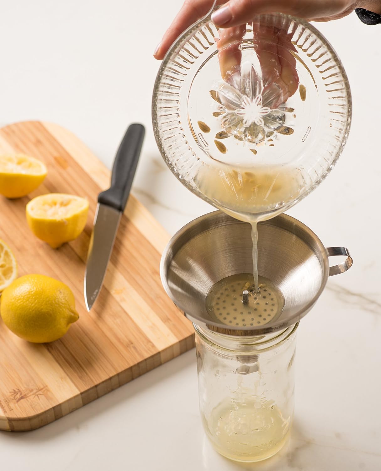 - SAVE TIME WITH DETACHABLE STRAINER: For wet or dry pouring. When storing homemade broths, sauces, oils or herbal infusions, skip a couple steps by using this stainless steel funnel for straining and pouring… all in one step.
