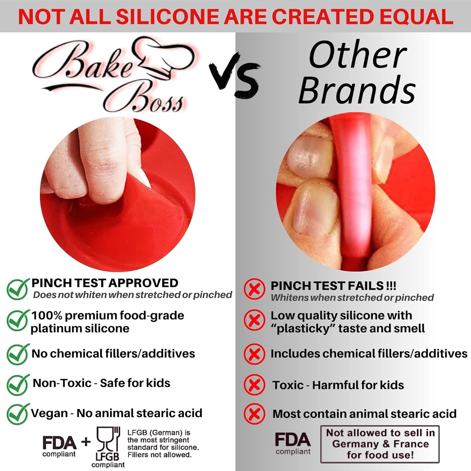 - No More Floppy Mess – Built-in Metal Frame for Stability: Say goodbye to spills and warping! The Bake Boss muffin pan silicone design includes reinforced metal handles, so you can move your muffins from counter to oven without needing a support tray.