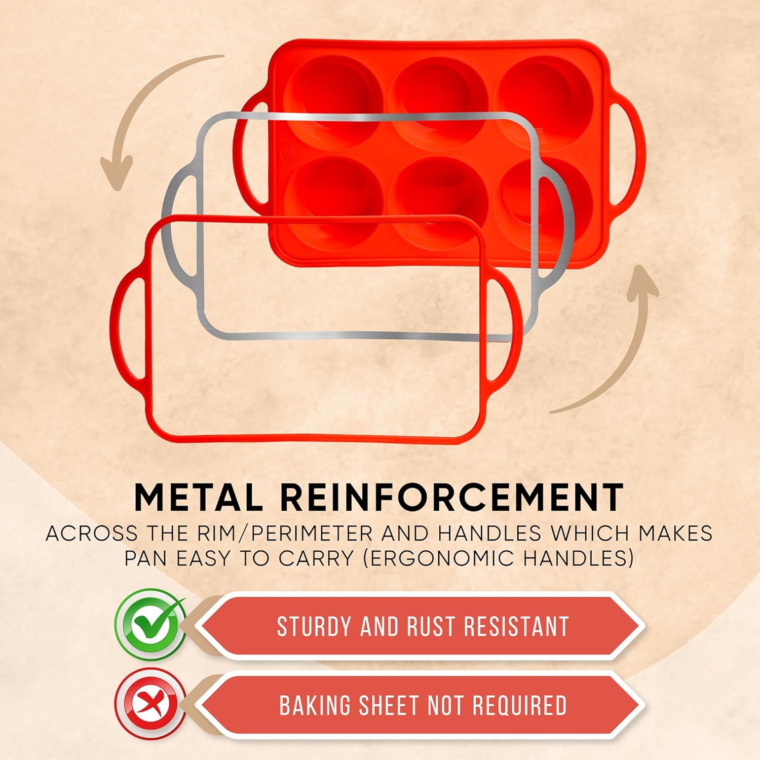 Regular Size 6 Cup Silicone Muffin Pans for Baking - Non-Stick Silicone Cupcake Pans, Easy-Release, Metal Handles, BPA-Free, Dishwasher & Oven Safe, Even Baking Muffin Tray