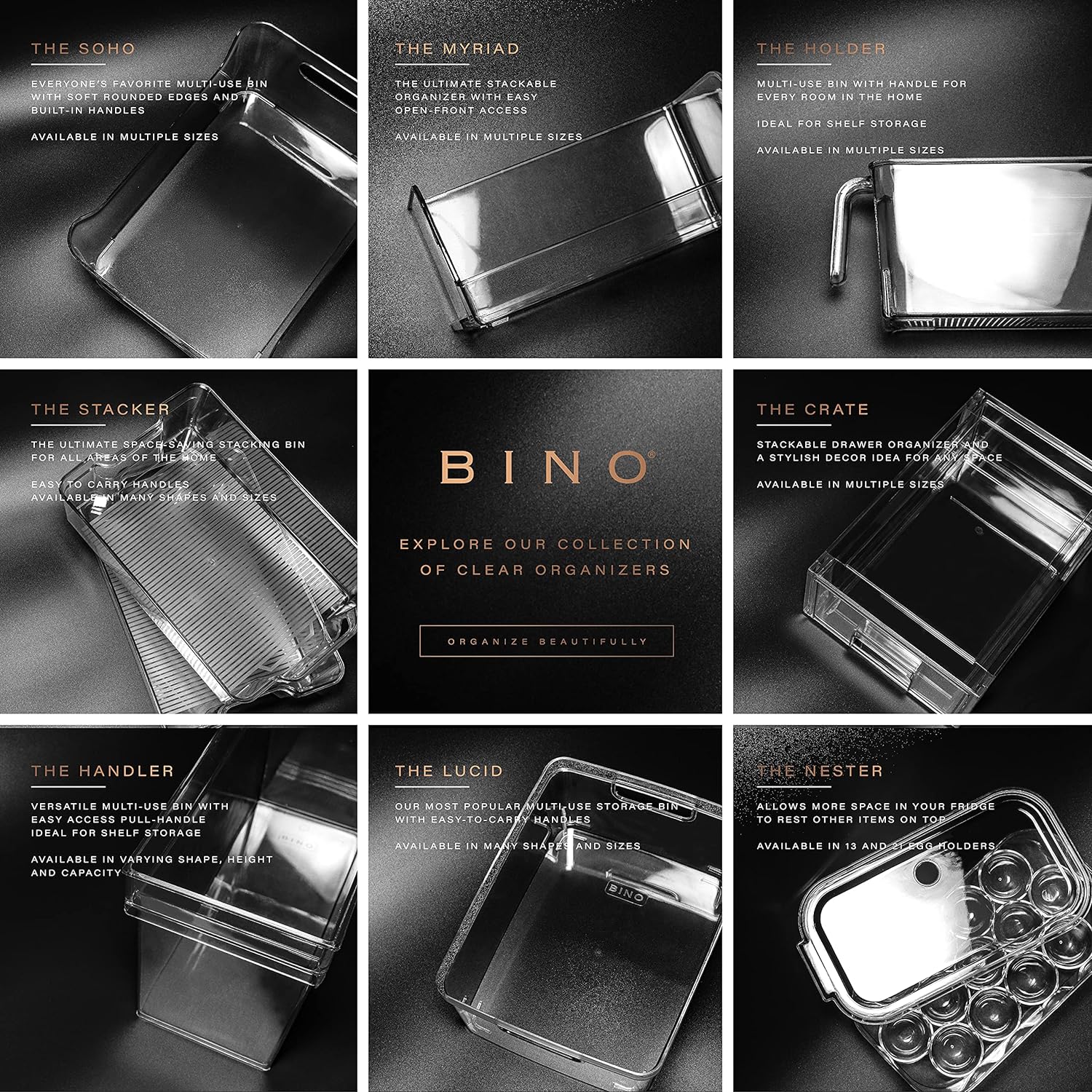 - Expertly Designed: All of our large, clear storage bins are expertly crafted for functionality and convenience. THE STACKER COLLECTION features BPA-free plastic organizer bins with built-in, easy-grip side handles for easy lifting, sliding, and transportation. Our stackable, clear containers for organizing living spaces are see-through, making it easy to find or locate what you need without opening the container.