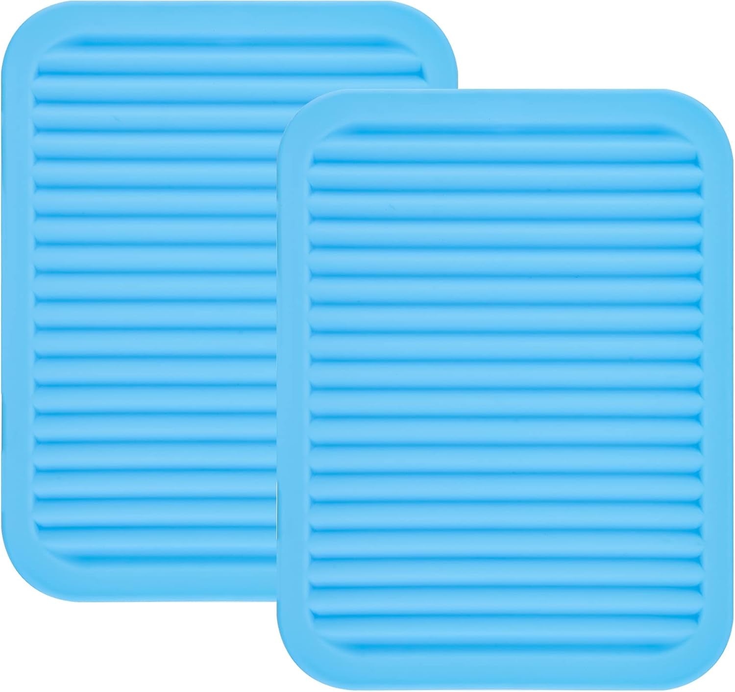 Smithcraft Lucky Plus Silicone Trivet Mat for Dish Hot Pads for Counter Top,Pan and Pot Heat Resistant Workshop, 2 Pack,Size:9x12 Inches, Color: Blue,Shape:Rectangular