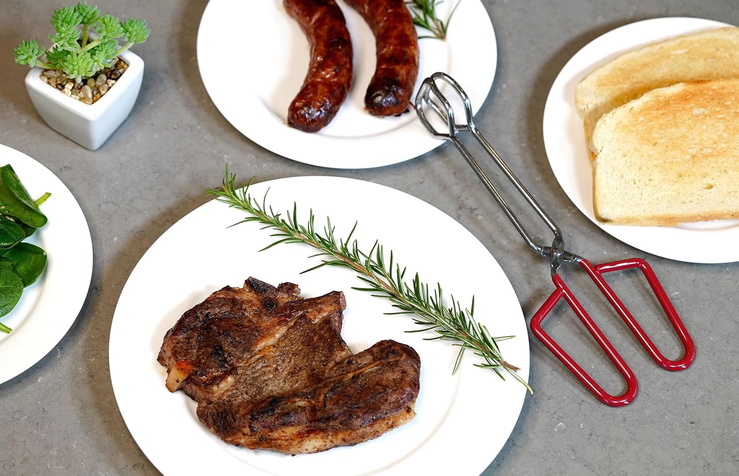 - Versatile Use: Perfectly designed with square heads and threaded tips, our metal tongs are ideal for effortlessly picking up a variety of items - from vegetables and meats to cheese, bread, salads, and fruits.