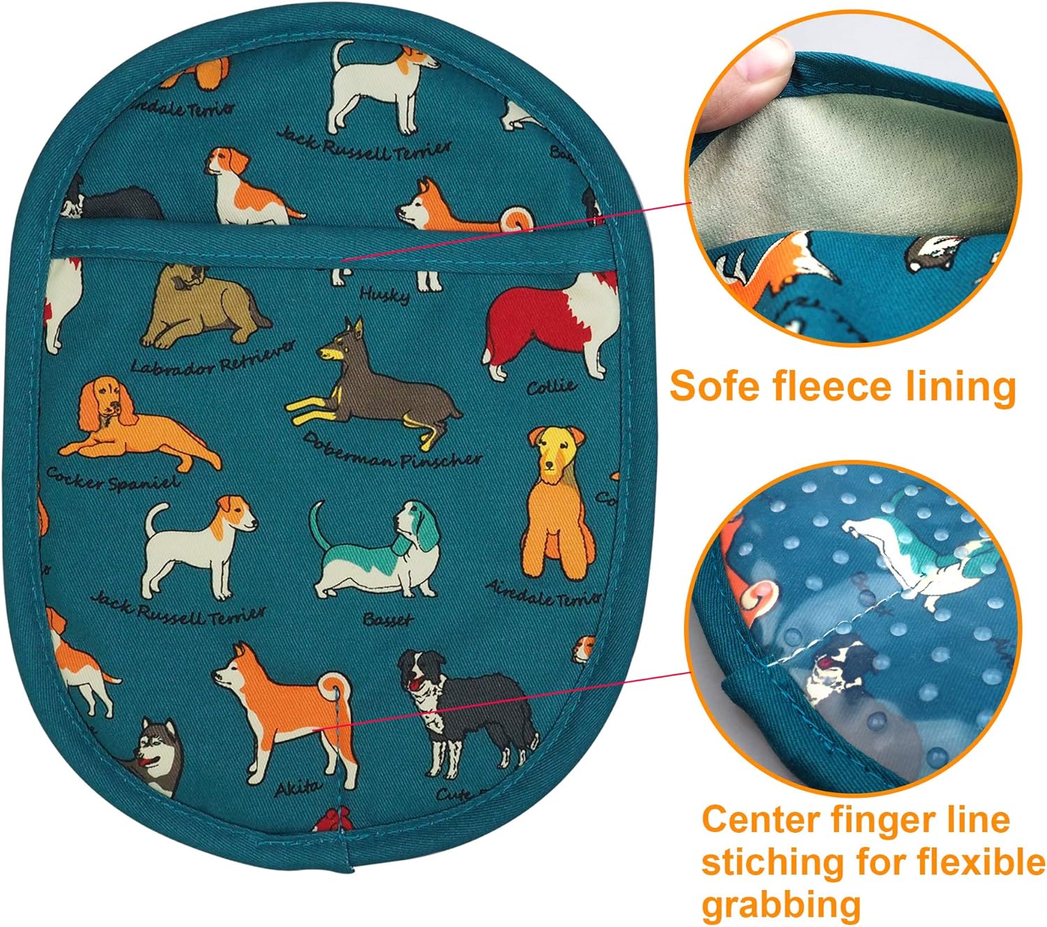- 5. FINE WORKMANSHIP AND DURABLE USE: WORKMANSHIP QUALITY ASSURANCE: Strictly follow the sewing standard of 1-inch 8-9 stitches, which makes fabric and silicone perfectly, durable and smooth combination. Each pot holder will be tested 7 times by QC to make sure high quality.
