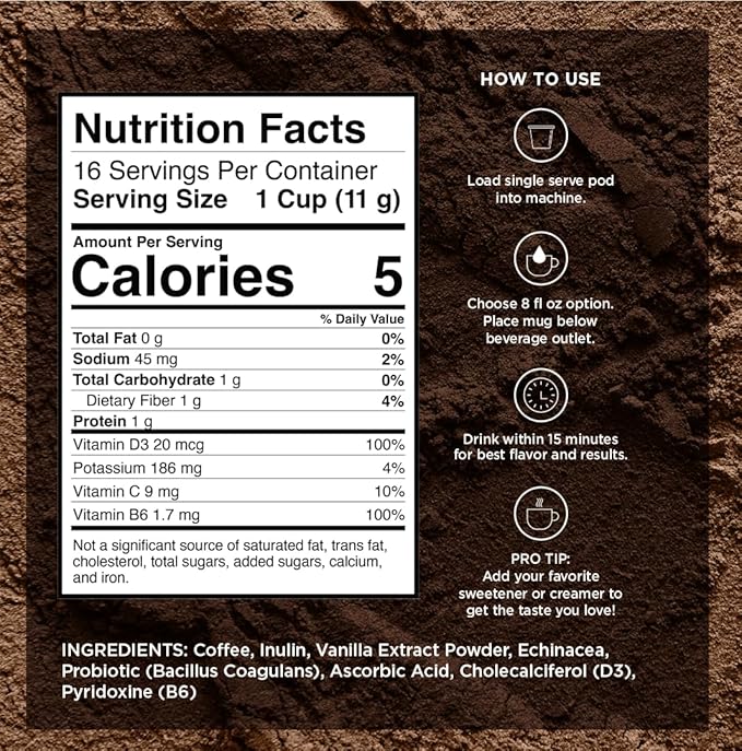 VitaCup Immunity Coffee Pods, Wellness Boost with Antioxidants, Echinacea, Probiotics, Vitamin C & D3, Medium Dark Roast, Recyclable Single Serve Pod Compatible with Keurig K-Cup Brewers,64 Ct