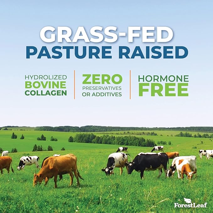 • Pasture Raised Grass Fed Collagen Powder - Forest Leaf advanced collagen is 100% grassfed collagen from naturally grazing, pasture raised livestock and is unflavored with zero artificial additives or flavors including sugar, gluten, dairy, nuts, soy, fish, egg, and hormones.