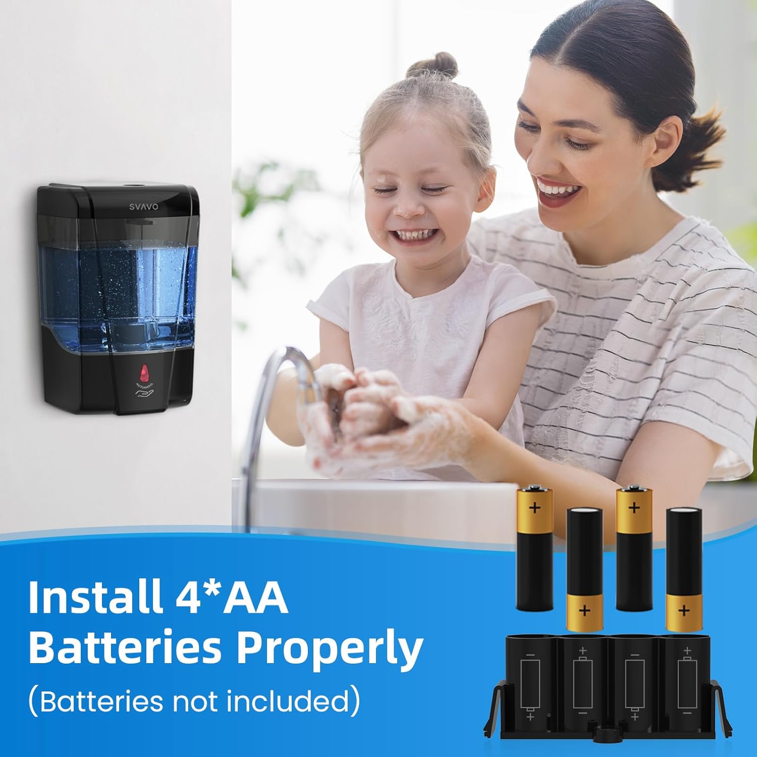 SVAVO Automatic Soap Dispenser Hand Soap Dispenser Wall Mount 600m/21 fl.oz, Touchless Electric Sensor Pump Battery Operated for Offices Home Kitchen Bathroom Hotel Restaurant Commercial