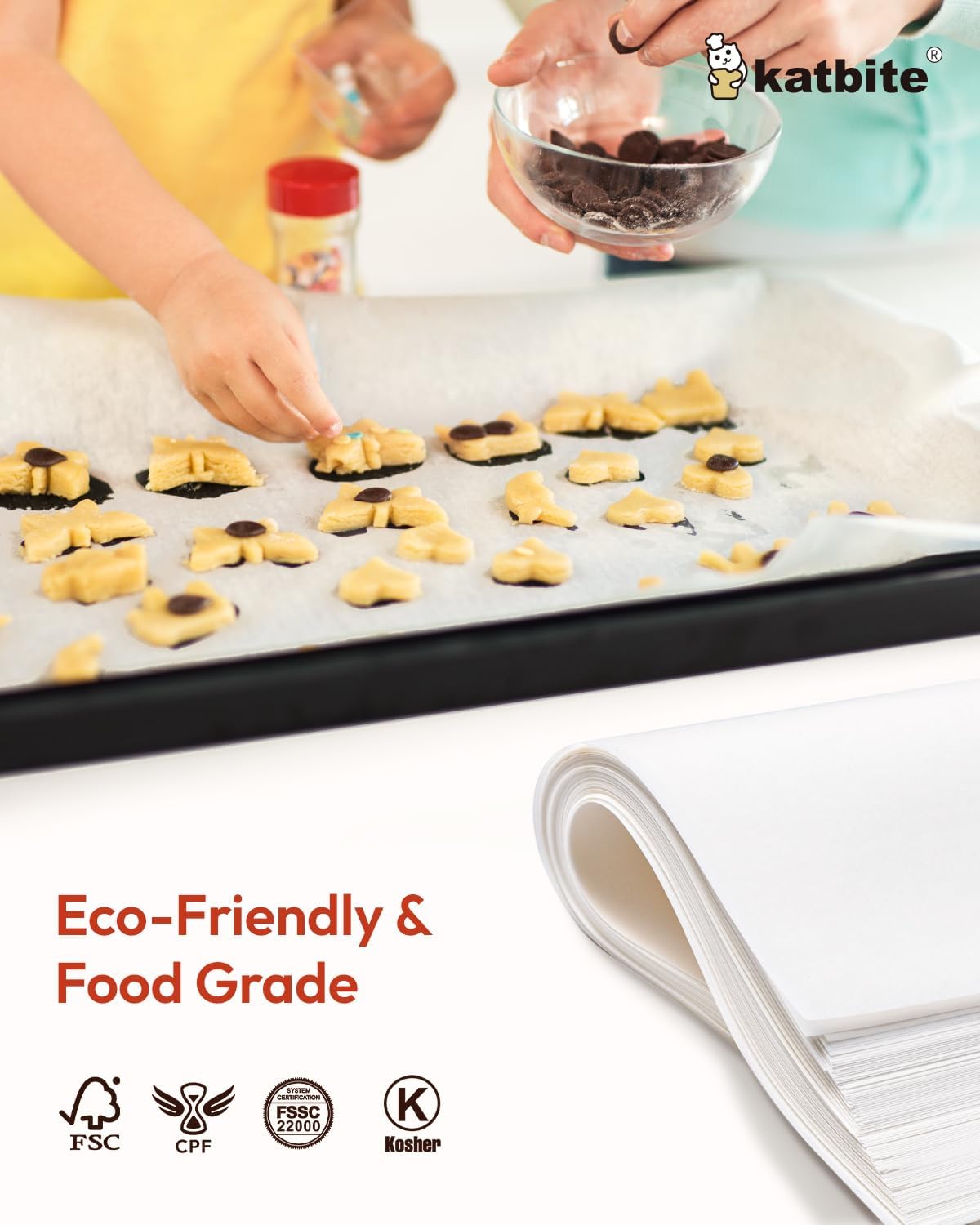 - NON-STICK & EASY TO CLEAN - Do you love baking but hate cleaning up? Katbite nonstick parchment paper for baking makes it possible and even works great! Food can be easily slide off from the baking tray and you just need to remove the paper and throw it away after baking.