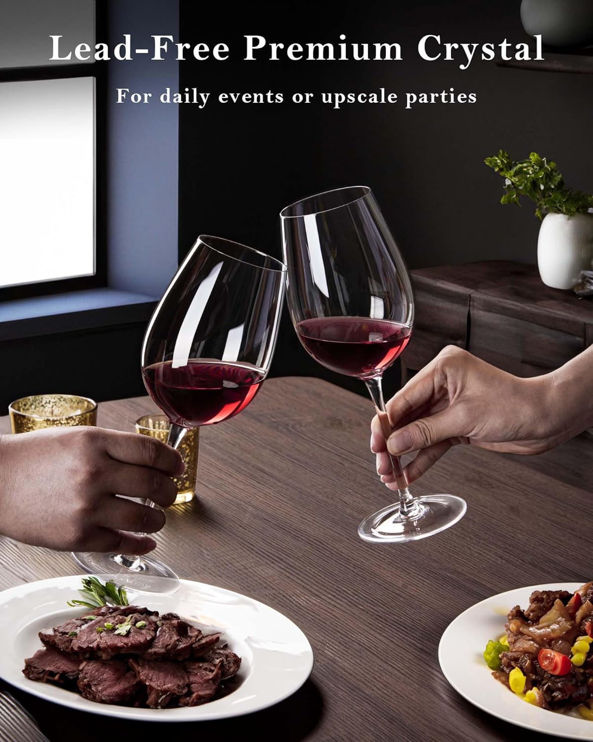 JBHO Crystal Wine Glasses - Hand Blown Red or White Wine Glasses -18 Ounce - Set of 2 - Lead-Free Premium Crystal - Long Stem Wine Glasses - Clear