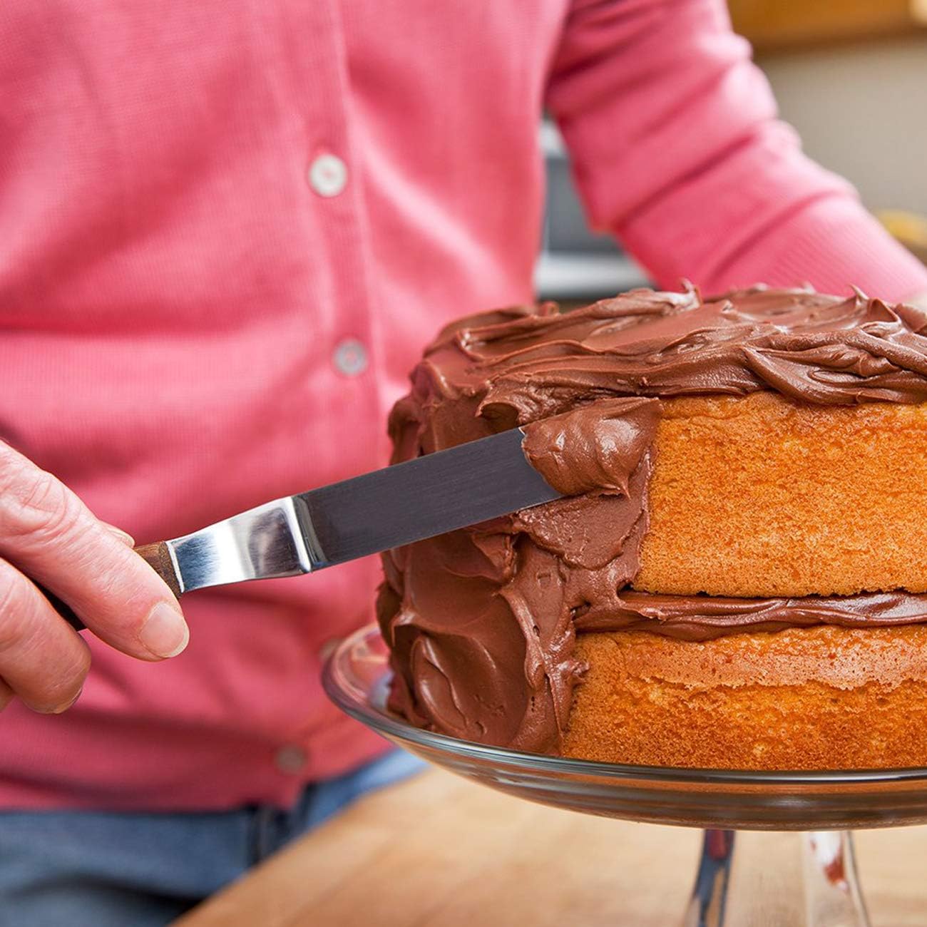 - Stainless steel spatula with wooden handle: Designed with wooden handles for a good grip, optimal comfort & control while you ice & decorate. Stainless steel material is quality assured.