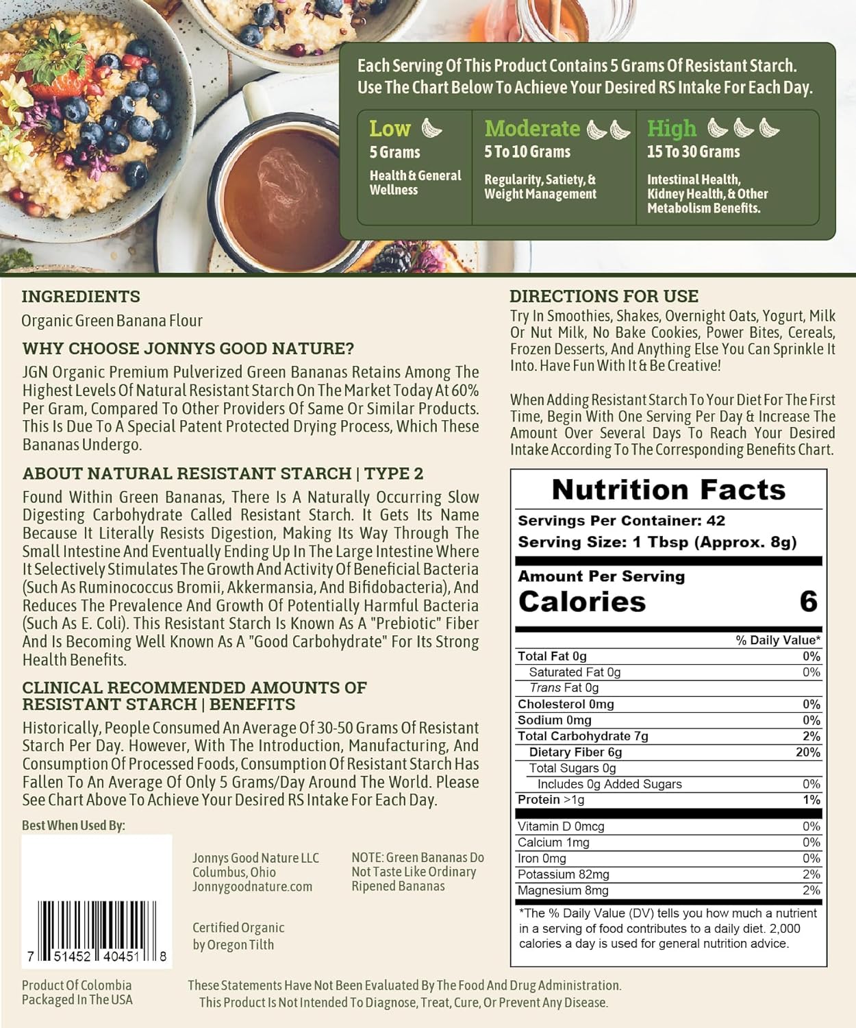 ![Jonnys Good Nature Organic Ultra High Resistant Starch Premium Green Banana Flour | On Average [10x's] More Prebiotic Fiber Per Gram Than Other Green Banana Flours On The Market | 42 Servings](http://risentrain.com/cdn/shop/files/711k3_aDtRL._SL1500.jpg?v=1764208410&width=1445)