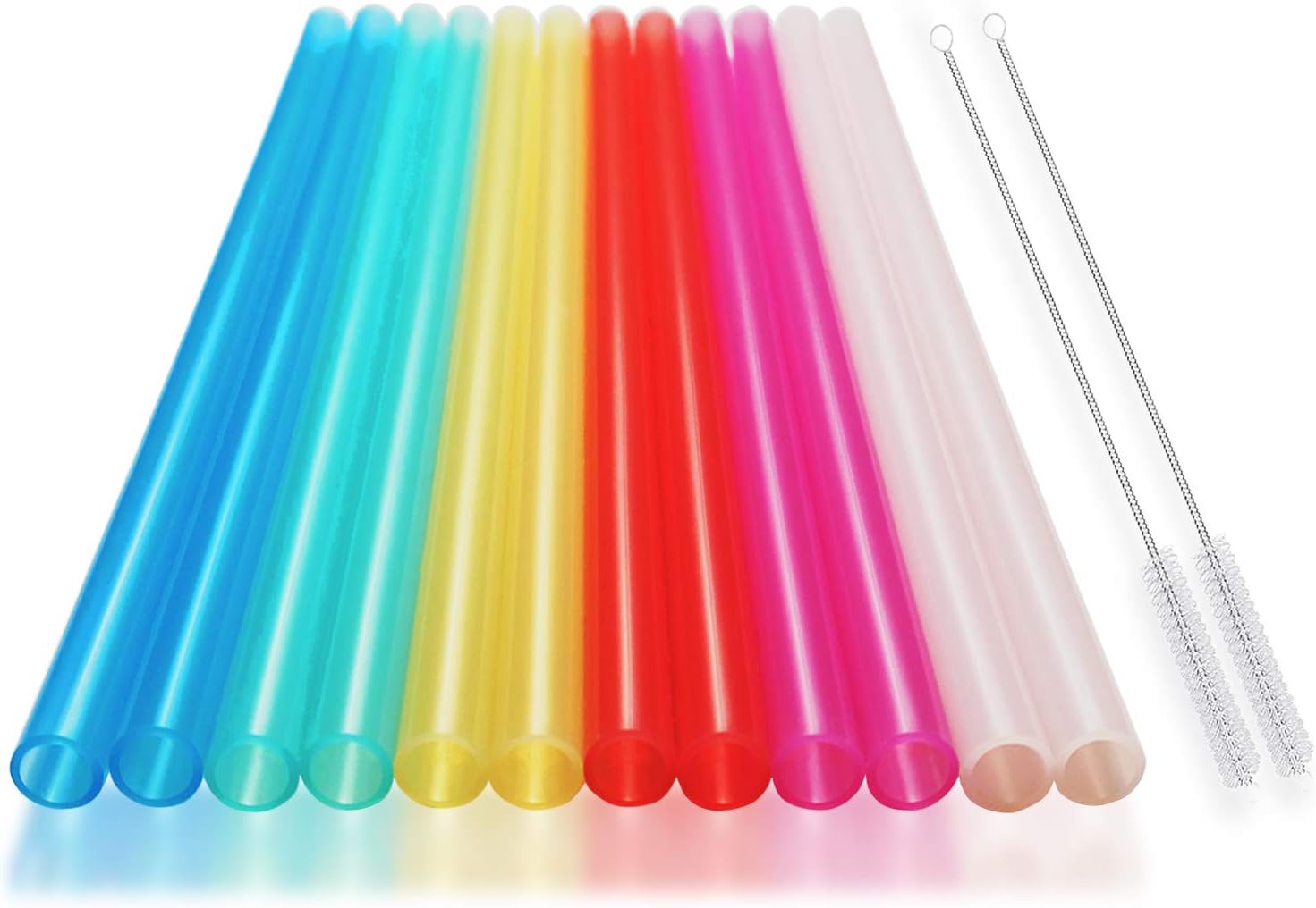 12 Pcs Eco Friendly Silicone Straws with 2 cleaning Brushes,Reusable Silicone Drinking Straws,for 20oz Tumblers,Yeti, Ozark, (Pure Multicolor, 7.87 inches)