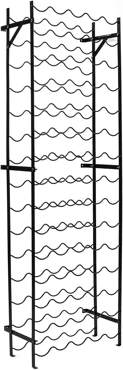 - STURDY DESIGN β Made of durable metal construction with smooth black finish β Features 15 rows of scallop/wave shaped shelves β Solid structure prevents wobbling, tilting, or falling β Holds most standard wine bottles β Wine Bottles NOT INCLUDED β Measures approximately 19β L x 9.50β W x 59.50β H (Approx 3.75β between each tier)