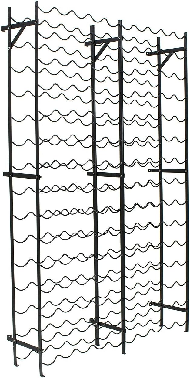 - STURDY DESIGN β Made of durable metal construction with smooth black finish β Features 15 rows of scallop/wave shaped shelves β Solid structure prevents wobbling, tilting, or falling β Holds most standard wine bottles β Wine Bottles NOT INCLUDED β Measures approximately 38β L x 9.50β W x 59.50β H (Approx 3.75β between each tier)