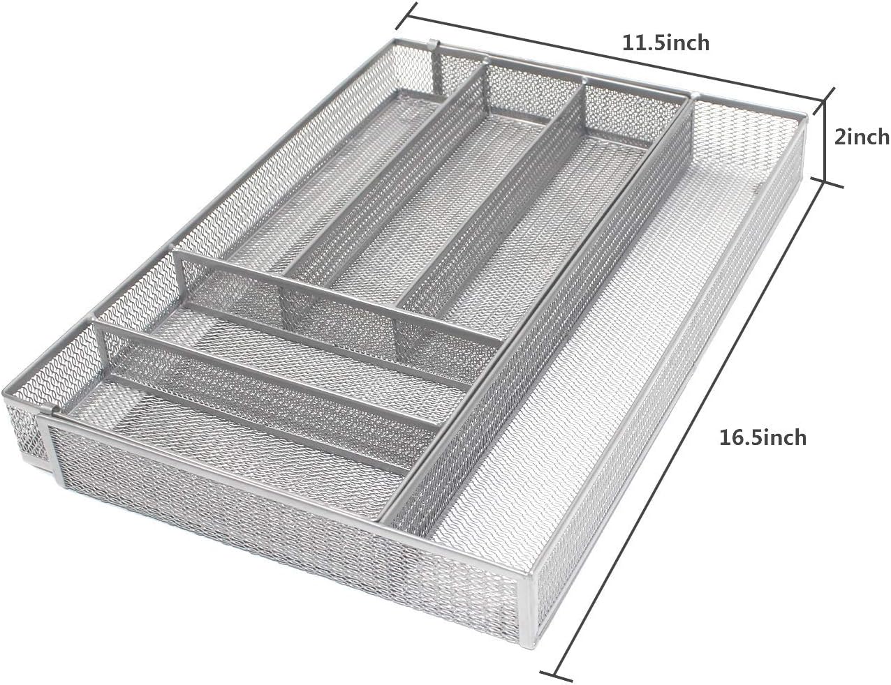 JANE EYRE Utensil Drawer Organizer - Expandable Cutlery Tray, Silverware/Flatware Storage Divider for Kitchen, Mesh Designing with Non-slip Rubber Feet (Silver)