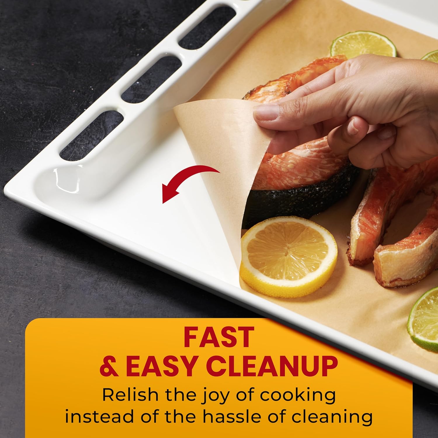 - PERFECT FOR BAKING – Greaseproof, waterproof butter paper. Won't tear or soak. Withstands up to 450°F, above most recipe needs. Food slides off, no oil spray required before baking.
