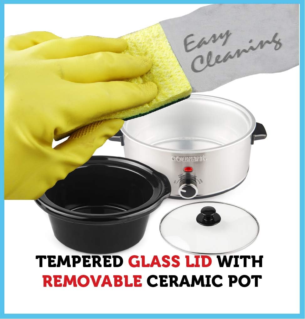 - Slow Cooker features Non-Stick, Removable, and Dishwasher-safe stoneware Crock insert. Cleanup is a breeze with the dishwasher-safe crock and tempered Glass Lid.