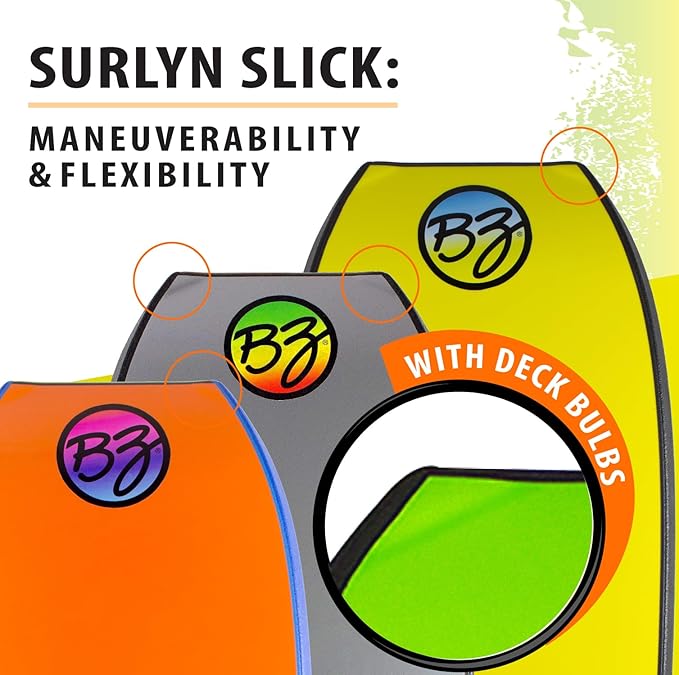 • SURLYN SLICK: Employing Surlyn plastic material for the slick surface, a choice found on nearly all high-quality bodyboards today. Surlyn provides maximum flexibility without compromising the stiffness inherent in the Zero-G PP core.
