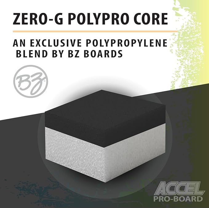 • ZERO-G POLYPRO CORE: A specialized blend of polypropylene (PP) materials developed by BZ. Engineered for exceptional buoyancy, durability, and water resistance. The core's stiffness enhances the rider's ability to maintain speed on the waves.