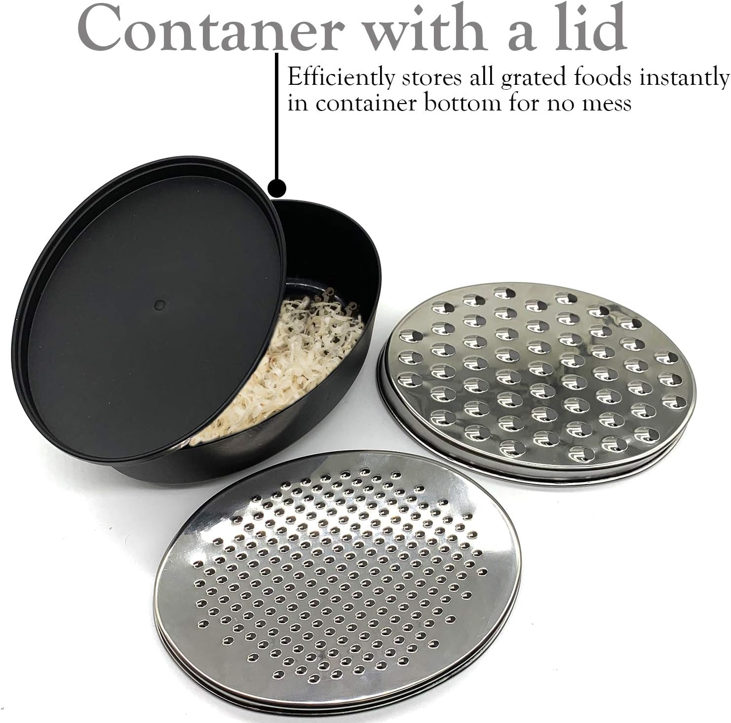 - AIRTIGHT STORAGE CONTAINER & SUPER EASY TO CLEAN - It comes with attachable container base to hold food for mess-free grating, with securely fitting snap on lid. Dishwasher safe, or easily washed with soap and water.
