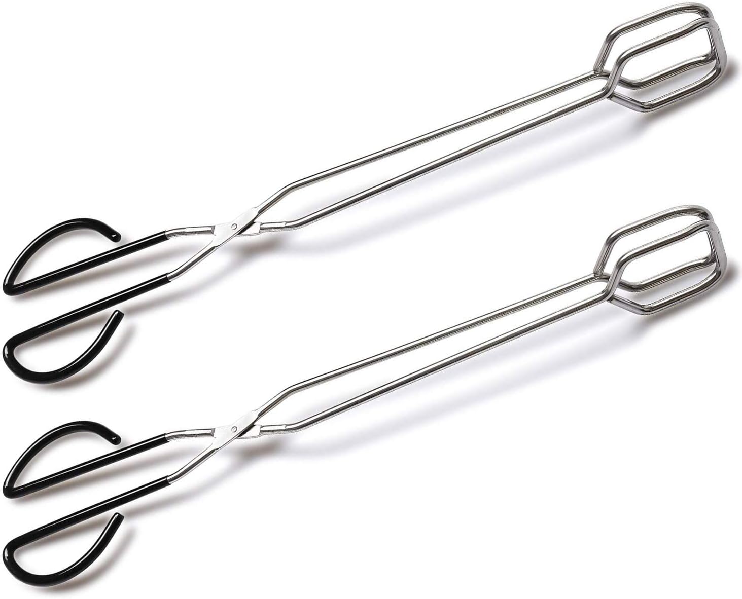 2Pcs 16 Inch Extra Long Stainless Steel Kitchen Scissor Tongs, Non-Slip Comfortable Red Grip, Heat Resistant for BBQ and Cooking