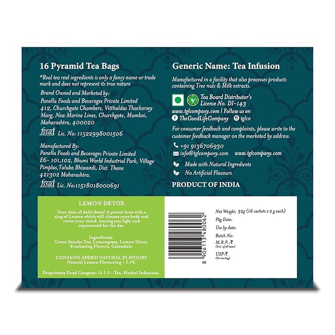 TGL Co. Lemon Detox Tea (16 Green Tea Bags) | Lemon Tea Keeps Hydrated | Sip it Hot or Iced